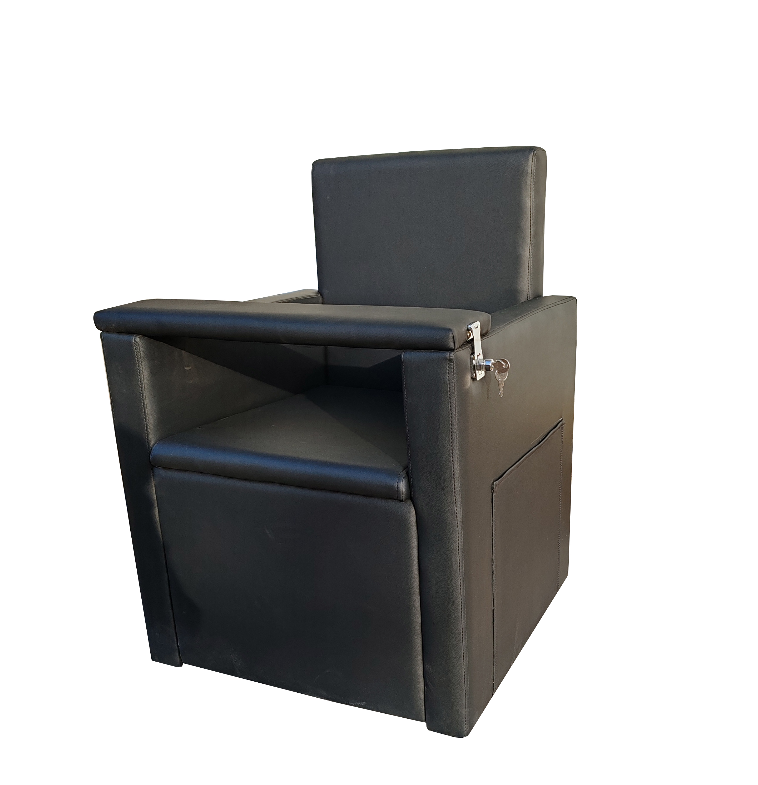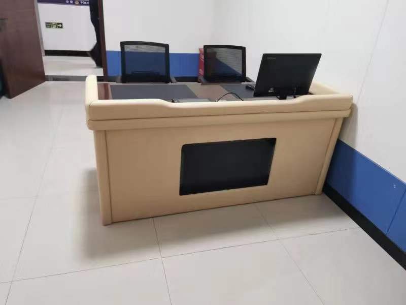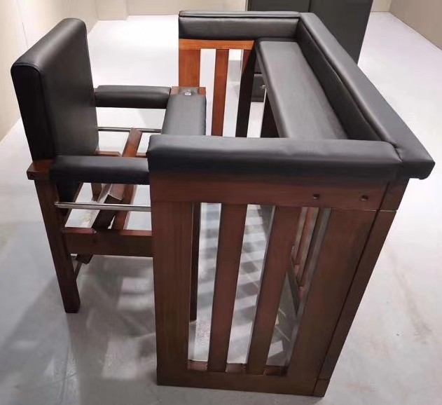 革新款式法院、司法机关审判椅。木质结构,靠背、扶手、前盖板软包。在法庭宣判起立时可以在内部自由站起。