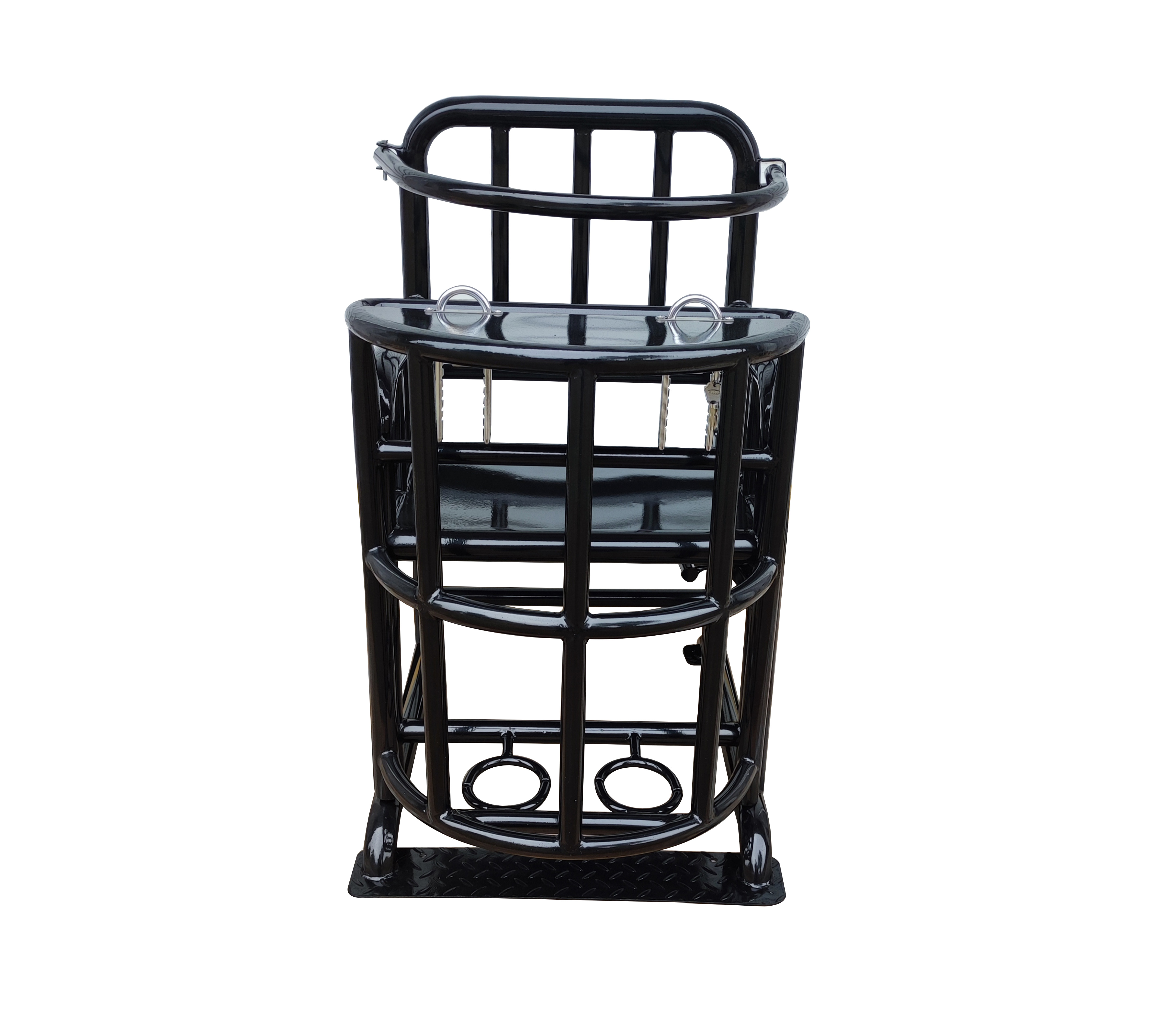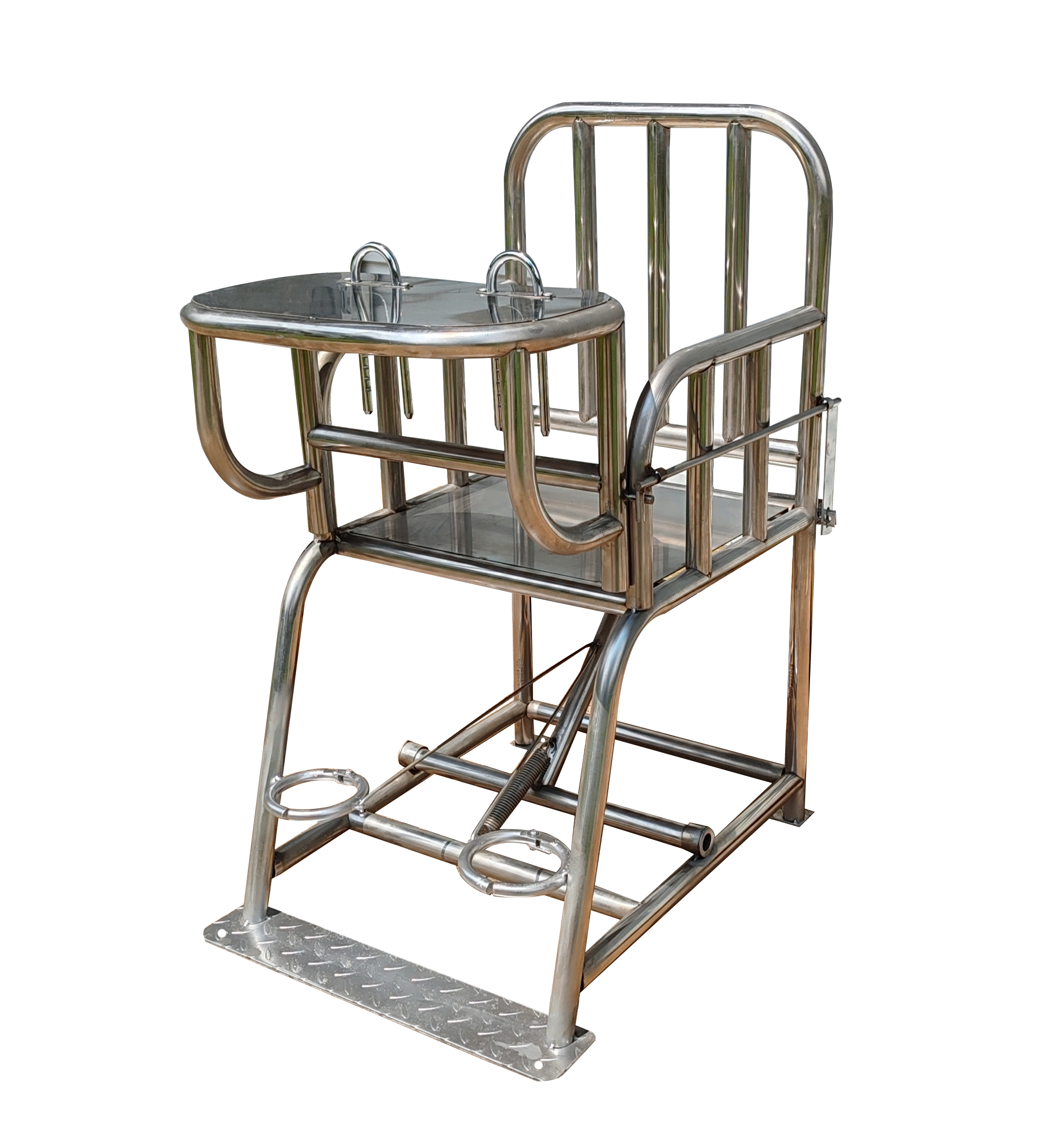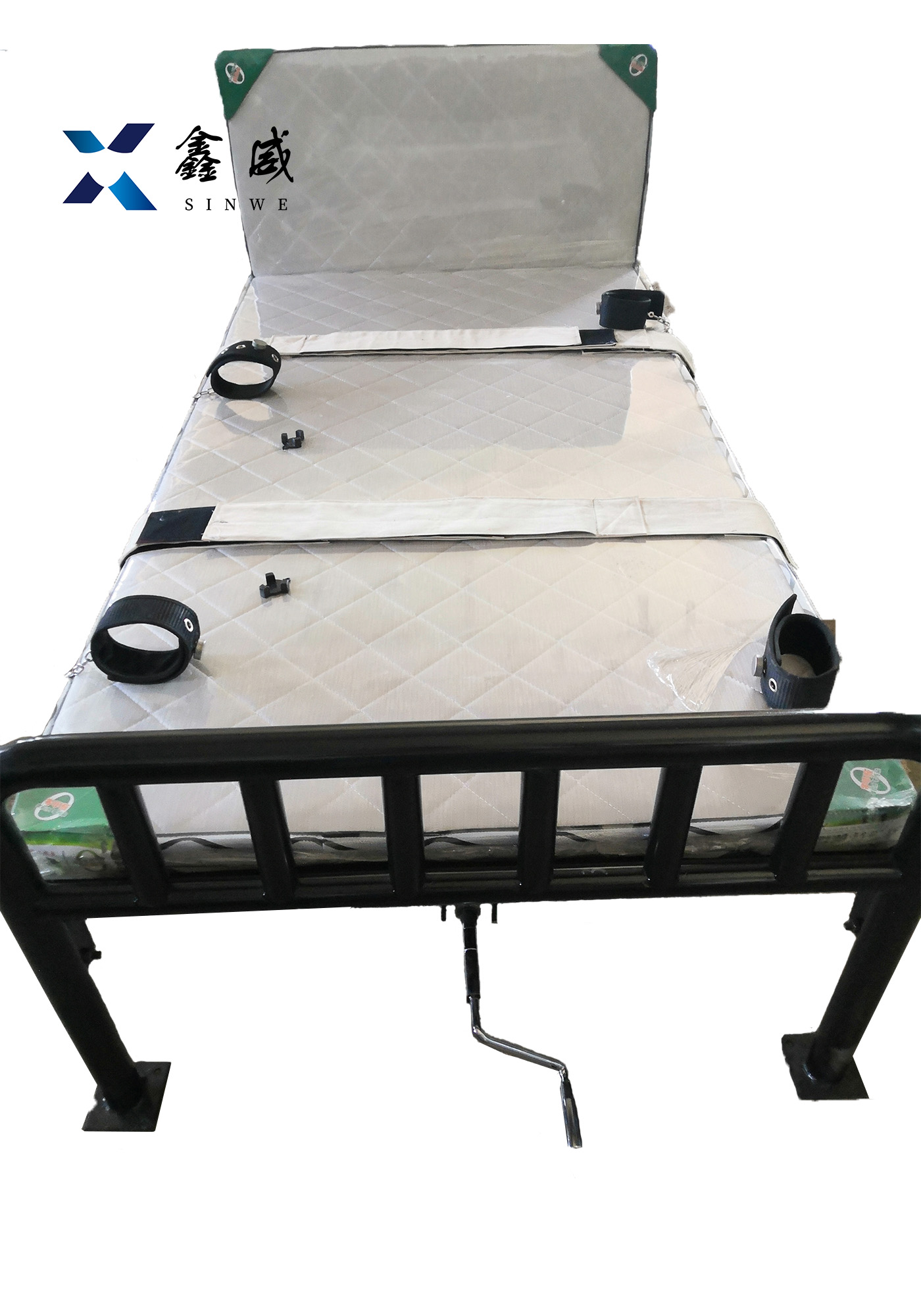 该型号器械主要用于公检法单位以及精神病院约束床,是我公司人员精心改良、研制开发的产品,该产品均选用国标优质工业铁质钢管,精细工艺,外观流畅,操作简单,坚固耐用,适合各种体型的人,结构设计合理,固定安全可靠。重量90公斤。